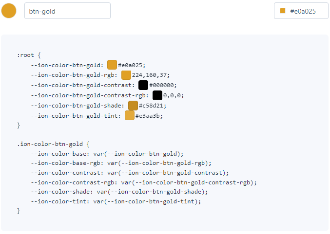 Moreover, If you want to add a new color name to make your app more fancy. You can access the link below to add your favorite color. For example: I want to add “btn-gold” to my button